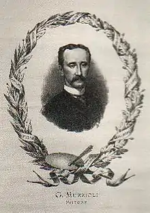 From 1878 to his death (1894) Muzzioli lived in Florence, where he painted the altarpiece for the church of Santi Senesio e Teopompo, Castelvetro di Modena.[1] Muzzioli was named professor of the Academies of Modena, Florence, and other cities. Among the painters he influenced was Eugenio Zampighi.
