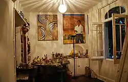 Today, Bickham lives in the Colonia Roma neighborhood in Mexico City. Her apartment has large windows which face the Plaza de las Cibeles with its fountain and provides natural light. Her paintings cover most of the walls, with the exception of the bedroom because she found herself at night taking them down to retouch them. She paints every morning after she wakes up either next to a window in her apartment or up on the building's roof, often with coffee in hand.[2][9] Physically, she has a fragile appearance but her eyes have been described as “laughing” and she often gets around Mexico City by bicycle.[5][14][15] She says she has two great loves, people and nature.[1] People and places that strike her can remain in her memory for years.[10] She has traveled much of the world and believes that there are universal emotions that make us human. And also believes that a multiethnic, multicultural world where people live in peace is possible.[10][14] She remains very attached to Mexico, saying that its people have a “real humanity” about them, capable of smiling and being polite even in trying economic circumstances.[1] This has been an influence in her art, even an entire exhibition at UNAM called México a través del pincel de Helen Bickham” (Mexico through the brush of Helen Bickham) to demonstrate her impressions of Mexico.[16]
