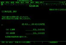 The original Bunsho Program and emulators booted from a floppy disk without Nihongo DOS. They used a proprietary disk format which couldn't be read from Nihongo DOS, so users had to replace floppy disks or set the boot partition to switch between two programs. Also, they had to use a conversion program to exchange data.[4] Later, they were ported for Nihongo DOS, and functions were gradually implemented. 3270 Kanji Emulation, 5250 Kanji Emulation and Bunsho Program were superseded by Nihongo 3270 PC in October 1983, Nihongo 5250 PC in September 1984 and DOS Bunsho Program in May 1986.[5][6]