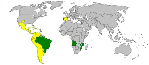 - Portuguese, official language in nine countries including Portugal and Brazil. After Spanish, Portuguese is the second most widely spoken Romance language in the world with over 250 million speakers, currently ranked seventh by number of native speakers.[16] Various Portuguese dialects exist outside of the European standard spoken in Portugal.