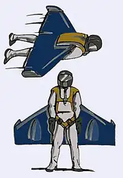 Jet wingsuits use small turbojets, but differ from other aircraft in that the fuselage and flight control surfaces consist of a human.[35][36]