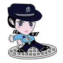 Jingjing (Chinese: 警警; pinyin: Jǐngjǐng) and Chacha (察察; Cháchá), a pun on the Chinese word for "police" (警察; jǐngchá), are the cartoon mascots of the Internet Surveillance Division of the Public Security Bureau in Shenzhen, People's Republic of China. Debuting on January 22, 2006, they are used to, amongst other things, inform Chinese Internet users what is and is not legal to consult or write on the Chinese Internet. According to the director of the Shenzhen Internet police, "[we published] the image of Internet Police in the form of a cartoon [...] to let all internet users know that the Internet is not a place beyond of law [and that] the Internet Police will maintain order in all online behavior."[1]