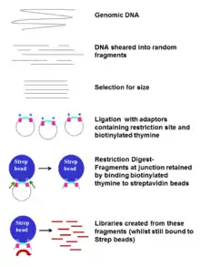 A library is often prepared by random fragmentation of DNA and ligation of common adaptor sequences.[5][6] However, the generated short reads challenge the identification of structural variants, such as indels, translocations, and duplication. Large regions of simple repeats can further complicate the alignment.[7] Alternatively, a jumping library can be used with NGS for the mapping of structural variation and scaffolding of de novo assemblies.[8]