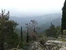 Kaisariani is located about 3 km (1.9 mi) southeast of Athens city centre, and 3 km (1.9 mi) of the Acropolis of Athens. The municipality has an area of 7.841 km2.[1] Towards the east the municipality extends to the forested Hymettus mountain, where the 11th century Kaisariani Monastery is situated.[2] The built-up area of Kaisariani is continuous with that of the center of Athens and the suburb Vyronas to the southwest. The main thoroughfare is Ethnikis Antistasis Avenue, which connects Kaisariani with the center of Athens and the eastern beltway Motorway 64.