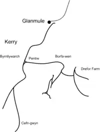 The Kerry Tramway was a 2 ft (610 mm) narrow gauge railway built in 1887 to serve the timber workings and slab quarry to the south of the village of Kerry, near Newtown in mid Wales.