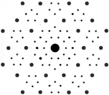 X-ray diffraction pattern of the natural Al63Cu24Fe13 quasicrystal.[12]
