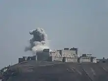 Smoke coming from the castle in August 2013, during the Syrian Civil War