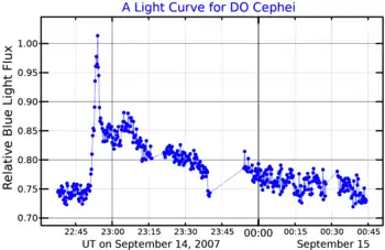 A blue band light curve for a flare on DO Cephei, adapted from Dal (2020)[1]