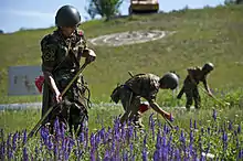 By the end of the 1920s, the Soviet Union developed a series of five-year plans, centered around industrialization and the collectivization of agriculture, including the creation of huge "kolkhoz" collective farming systems, needed to feed the new workers in the industries.[35] Because of the plan's reliance on rapidity, major economic and cultural changes had to occur, which led to conflicts. In Kyrgyzstan, Russian settlers acquired the best pasture land, creating much hardship for most of its original inhabitants, Kazakh, Kyrgyz and Turkmen nomads, who were also forced to settle down on soil that hadn't enough agricultural potential.[36] [33] The changes caused unrest, and between 1928 and 1932, nomads and peasants made it clear through methods like passive resistance that they did not agree with these policies, in the Kirgiziya area also guerrilla opposition occurred.[33][31][36] The region suffered relatively more deaths from collectivization than any other.[31]