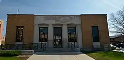The Municipal Building (1922) is an example of Prairie School early modern architecture, which, like the courthouse, has been placed on the National Register of Historic Places.