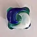 Laundry detergent pods (or Pouches Of Detergent liquids or liquitabs) are water-soluble pouches containing highly concentrated laundry detergent, softener and other laundry products. Notable brands of these packs include All, Arm & Hammer, Gain, Purex, Persil and Tide.[1] They first became popular in February 2012 when they were introduced by Procter & Gamble as Tide Pods (Ariel Pods in Europe).[1]