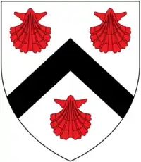 Arms of Pollard of King's Nympton: Argent, a chevron sable between three escallops gules[1]