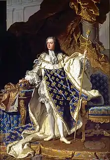 Louis XV (15 February 1710 – 10 May 1774), known as Louis the Beloved (French: le Bien-Aimé),[1] was King of France from 1 September 1715 until his death in 1774. He succeeded his great-grandfather Louis XIV at the age of five. Until he reached maturity (then defined as his 13th birthday) in 1723, the kingdom was ruled by his grand-uncle Philippe II, Duke of Orléans, as Regent of France. Cardinal Fleury was chief minister from 1726 until his death in 1743, at which time the king took sole control of the kingdom.