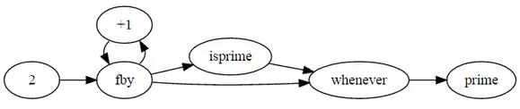 h = 1 fby merge(merge(2 * h, 3 * h), 5 * h);
