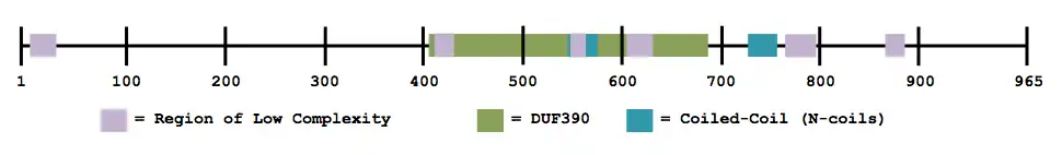 The domain of unknown function 390 (pfam04094: DUF390) is part of a family of proteins that have only been identified within the rice genome. Although this domain's function is unknown, it may be some kind of transposable element.[8]