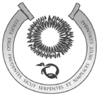 The lower half is a serpent, "nowed" or coiled. This is a grass snake, and comes from the crest of the Wolstenholme family of Neston. Co. Chester, and Liverpool from whom the current Warden is descended. The serpent is traditionally a symbol of wisdom, healing and learning.[27]