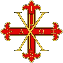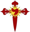 Originally an "association" of knights who guarded the Church of the Holy Sepulchre under the jurisdiction of the kings of Jerusalem. In 1113, they became consubstantial with the Canons of the Holy Sepulchre after their recognition by Pope Paschal II, as a military branch, Militi Sancti Sepulcri; after 1291, the Knighthood was awarded to prominent pilgrims by the Custos of the Holy Land.[9] Reorganised as Sacred and Military Order of the Holy Sepulchre in 1496 by Pope Alexander VI. Reorganised by Pope Pius IX with the residential restoration of the Latin Patriarchate of Jerusalem in 1847.[10] Known as the Equestrian Order of the Holy Sepulchre of Jerusalem since 1931. | |