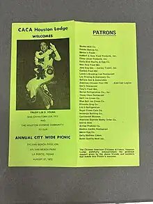 - ↑ "CACA Houston Lodge Annual City Wide Picnic Program".