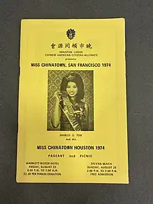 - ↑ "Houston Lodge Chinese American Citizens Alliance Miss Chiantown Houston Pageant 1984".
