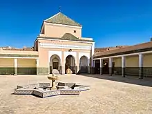 The Saadians, especially under the sultans Abdallah al-Ghalib and Ahmad al-Mansur, were extensive builders and benefitted from great economic resources at the height of their power in the late 16th century. In addition to the Saadian Tombs, they also built several major mosques in Marrakesh including the Mouassine Mosque and the Bab Doukkala Mosque, which are notable for being part of larger multi-purpose charitable complexes including several other structures like public fountains, hammams, madrasas, and libraries. This marked a shift from the previous patterns of architectural patronage and may have been influenced by the tradition of building such complexes in Mamluk architecture in Egypt and the külliyes of Ottoman architecture.[56][80] The Saadians also rebuilt the royal palace complex in the Kasbah of Marrakesh for themselves, where Ahmad al-Mansur constructed the famous El Badi Palace (built between 1578 and 1593) which was known for its superlative decoration and costly building materials including Italian marble.[56][80]