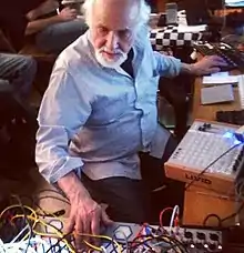 Morton Subotnick playing a Buchla synthesizer at his studio, NYU (2012)