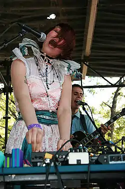 Kevin Attics and Jessica Boettger mid-performance at Fun Fun Fun Fest in Austin, TX