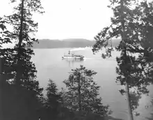 Multnomah passing through Tacoma Narrows, as seen from Point Defiance Park, summer, 1898