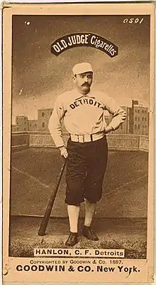 Hanlon joined the newly formed Detroit Wolverines in 1881. He is one of only two players, along with Charlie Bennett, who played for the Wolverines during all eight years of the team's existence. In his eight seasons with the Wolverines, Hanlon compiled a .261 batting average, which was boosted to a .318 on-base percentage by 271 bases on balls and six times hit by pitch. He hit over .300 only once in his career, compiling a .302 batting average (.372 on-base percentage) in 1885.[6]