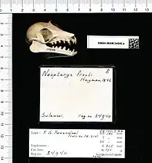 The small-toothed fruit bat or small-toothed Flying fox (Neopteryx frosti) is a species of megabat in the family Pteropodidae. It is the only species within the genus Neopteryx.[2] It is endemic to central Indonesia. It is known only from two localities on Sulawesi island. Its natural habitat is subtropical and tropical dry forests.