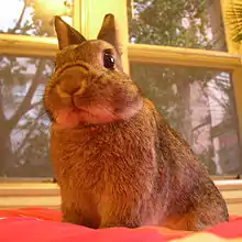 The Netherland Dwarf is a breed of domestic rabbit that originated in the Netherlands. Weighing 1.1–2.5 pounds (0.50–1.13 kg),[1][2] the Netherland Dwarf is one of the smallest rabbit breeds. Its popularity as a pet or show rabbit may stem from its neotenic appearance. The Netherland Dwarf is recognised by both the American Rabbit Breeders Association (ARBA)[1] and the British Rabbit Council (BRC).[2] The Netherland Dwarf is often confused with the Polish breed of rabbit, but the latter has longer ears, a non-brachycephalic head and less cobbiness.