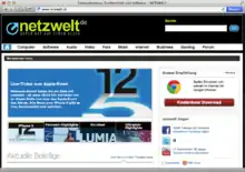 Netzwelt (own writing: netzwelt) is a technology-related news website run by Netzwelt GmbH. The two founders, Dirk[1] and Sascha Hottes,[2] founded Netzwelt in early 1999 in Darmstadt. The site, which bills itself as "Guter Rat auf einen Klick" (Good advice at a click), features consumer electronics and software, as well as user-generated content in a popular forum. With up to 4,8 million visitors and 18 million page impressions, Netzwelt is one of the top five IT websites in Germany, Austria and Switzerland.[3]