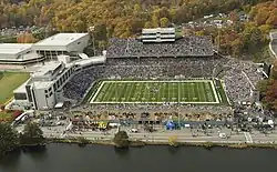 One of Steinbrenner's major goals was to renovate Yankee Stadium.[188] Both the stadium and the surrounding neighborhood had deteriorated by the late 1960s.[189] CBS initially suggested renovations, but the team needed to play elsewhere, and the Mets refused to open their home, Shea Stadium, to the Yankees.[190] A new stadium in the Meadowlands, across the Hudson River in New Jersey, was suggested (and was eventually built, as Giants Stadium, specifically for football).[191] Finally, in mid-1972, Mayor John Lindsay stepped in. The city bought the stadium and began an extensive two-year renovation period.[188] Since the city also owned Shea Stadium, the Mets were forced to allow the Yankees to play two seasons there.[190] The renovations modernized the look of the stadium, significantly altered the dimensions, and reconfigured some of the seating.[192]