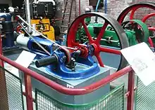 - Four different engines by various makers. Used to turn large mill engines into the starting position, a procedure that was originally done by "barring" the flywheel by hand. This includes an engine that was in the Bolton Museum's collection but has been transferred to this museum which is only a few yards from its original working place in Atlas No 6 Mill.