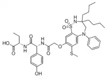 • CCCCC1(CCCC)CN(C2=CC=CC=C2)C2=CC(SC)=C(OCC(=O)N[C@@H](C(=O)N[C@@H](CC)C(O)=O)C3=CC=C(O)C=C3)C=C2S(=O)(=O)N1