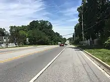 The road, also known as Old Post Road, was incorporated in 1813 as the Elk and Christiana Turnpike in order to get more money for repairs. The turnpike was completed in April 1817. As a turnpike, tolls were collected to pay for the maintenance of the road. The construction of the New Castle and Frenchtown Railroad lowered the revenues of the turnpike and it became a public road again in 1838.[6] The road historically went through agricultural areas; however, the surroundings have become more developed over the years.[5] Much of the Old Baltimore Pike remains two lanes.[6]