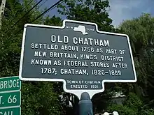 1. Davenport, Arthur (June 15, 1969). "An Uncertain Centennial For Chatham" (payment for complete article). The New York Times. p. XX7. Retrieved May 11, 2009. The original Chatham changed its designation to Old Chatham. [...] The tiny village of Old Chatham, from which the present Chatham appropriated its name...