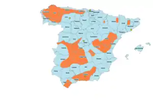 For its part, the PCE promoted the Unión Nacional Española, which sought to bring together all anti-Francoist forces, both republican and monarchist.[32] The liberation of France in the summer of 1944 led the UNE to consider that the time had come to launch the invasion of Spain once the Germans had abandoned the border posts and had been replaced by members of the Gendarmerie Nationale.[33] The operation devised by Jesús Monzón and his political and military advisors consisted of a frontal attack on the border defenses of the Pyrenees to establish several bridgeheads of "liberated Spain", which was to provoke a popular insurrection throughout the country.[34] It was codenamed Operation Reconquista de España and was to involve some 9,000 Spanish members of the French maquis, integrated since May 1944 in the Spanish Guerrilla Grouping (AGE).[35]