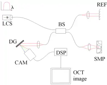 - ↑ Choma M, Sarunic M, Yang C, Izatt J (September 2003). "Sensitivity advantage of swept source and Fourier domain optical coherence tomography". Optics Express. 11 (18): 2183–2189. Bibcode:2003OExpr..11.2183C. doi:10.1364/oe.11.002183. PMID 19466106.