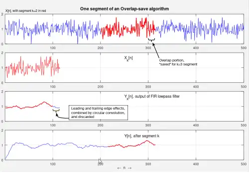 • The leading and trailing edge-effects of circular convolution are overlapped and added,[upper-alpha 3] and subsequently discarded.[upper-alpha 4]