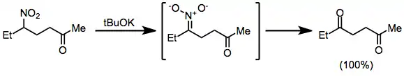Oxidation of nitronate anions, generated in situ from nitroalkanes, leads to carbonyl compounds in an example of an oxidative Nef reaction.[15]