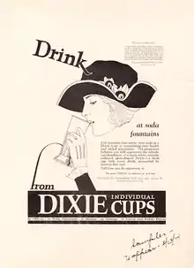 - ↑ "Whistlin' Dixie: Marketing the Paper Cup, 1910-1960". sites.lafayette.edu. Retrieved 2019-05-18.