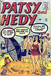 The humor-comic version of Patsy (left) in Patsy and Hedy #72 (Oct. 1960), a spinoff of the flagship title Patsy Walker. Cover art by Al Hartley.[21]