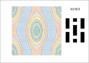 Resolution is also nontrivial in a two-dimensional context. For example, a tighter line pitch results in wider gaps (in the perpendicular direction) between the ends of the lines.[33][34] More fundamentally, straight edges become rounded for shortened rectangular features, where both x and y pitches are near the resolution limit.[35][36][37][38]