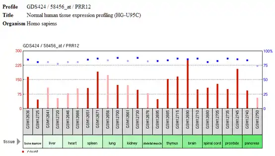 - 1 2 "PRR12 Gene - GeneCards | PRR12 Protein | PRR12 Antibody". GeneCards. Retrieved 2014-01-26.