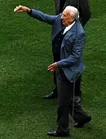 Kiner was inducted into the Baseball Hall of Fame in 1975.[31] Kiner had garnered 273 votes by the Baseball Writers' Association of America, one more than the minimum required for election. It was in his final year of eligibility (his 13th, as no vote was held in 1963 and 1965), and it was the closest call possible for any player elected by the BBWAA. (He would have had a chance later with the Veterans Committee had he not been elected by the BBWAA). Kiner was also the only player voted in that year.[32][33] He attended every Hall of Fame ceremony from the time he was inducted until his death.[2]