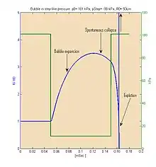 - , in which, is the pressure within the bubble, assumed to be uniform and is the external pressure infinitely far from the bubble