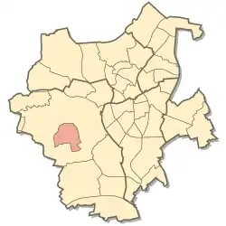 Rheindahlen is located in Mönchengladbach West, the largest urban district in the city of Mönchengladbach. It lies to the south-west of the main urban area and borders on the municipality of Schwalmtal to the west and the county of Heinsberg to the southwest. Its neighbouring communities within the borough of Mönchengladbach are Hardt to the north, Rheydt to the east and Wickrath to the south. The centre of Rheindahlen is about 7.5 kilometres southwest of the city centre of Mönchengladbach.