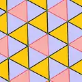 This tiling is related to the trihexagonal tiling by dividing the triangles and hexagons into central triangles and merging neighboring triangles into kites.