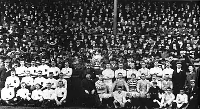 In 1897, the line-out was abolished[15] and in 1898 professionalism introduced.[16] In 1906, the Northern Union changed its rules, reducing teams from 15 to 13 a side and replacing the ruck formed after tackles with the play-the-ball. By this point, rule changes meant the game organised by the RFL was distinct as a sport from its union cousin.[17]