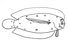 - ↑ Diaz de Astarloa, J.M., Causse, R. & Pruvost, P. (2014): New dextral flounder Samariscus hexaradiatus sp. nov. (Samaridae, Pleuronectiformes) from the Solomon Islands, South-West Pacific Ocean. Cybium, 37 (4): 241-246.